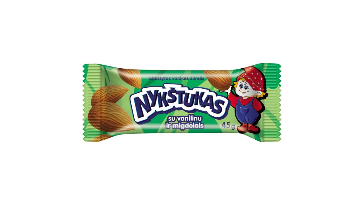 €0.69Glaistytas varškės sūrelis su vanilinu ir kepintais migdolais NYKŠTUKAS, 25 % rieb., 45 g