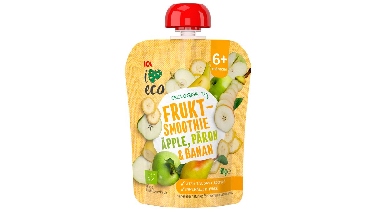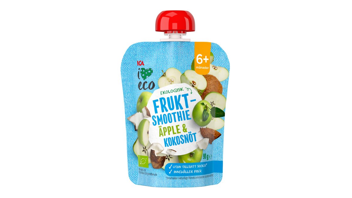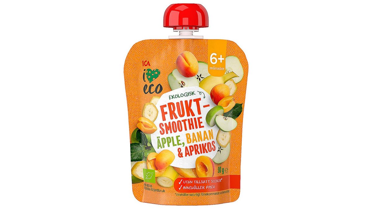 Ekologiška tyrelė kokteilis I LOVE ECO su obuoliais, bananais ir abrikosais, vaikams nuo 6 mėn., 90 g