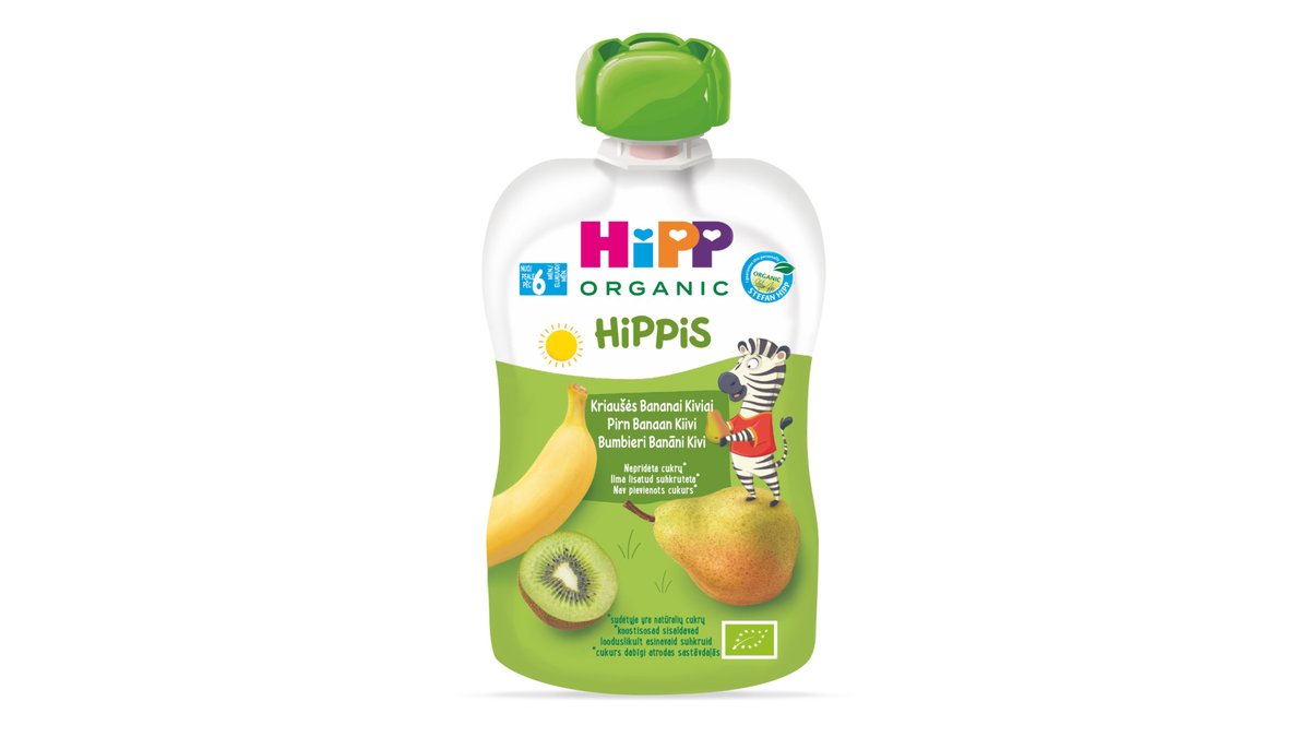 Ekologiškas batonėlis su avietėmis, bananais ir obuoliais HIPP BIO, su 63 % vaisių, nuo 1 metų amžiaus, 23 g