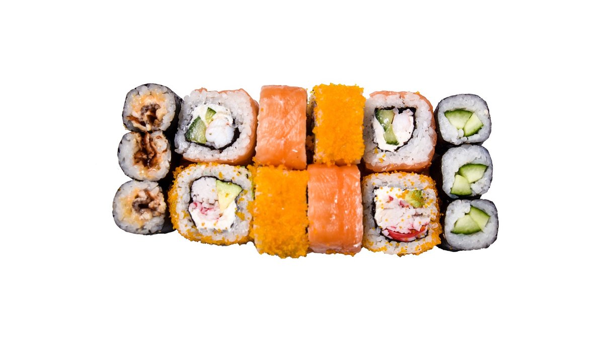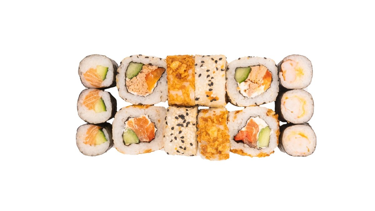 14 vienetų Nr. 1 Kappa 3 vnt. Nr. 7 Unagi 🌶️ 3 vnt. Nr. 11 Kani masago 4 vnt. Nr. 16 Ebi sake 4 vnt.