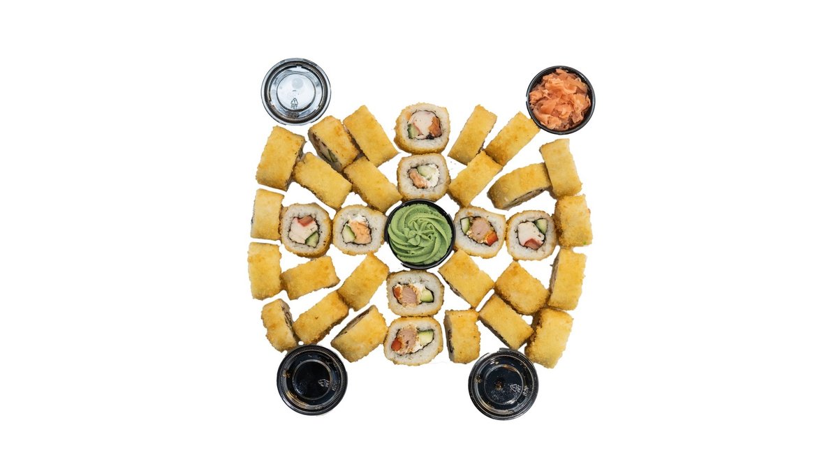 54 vienetai 6-7 asmenims. Nr. 5 Kappa maguro 6 vnt. Nr. 9 Teriyaki yasai 8 vnt. Nr. 13 Sake tempura 8 vnt. Nr. 15 Kani sake 8 vnt. Nr. 19 Sake wakame 8 vnt. Nr. 24 Maguro tamanegi 🌶️ 8 vnt. Nr. 27 Čili ebi karai 🌶️🌶️ 8 vnt.