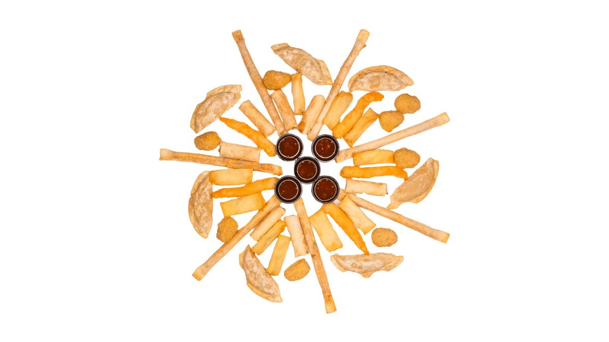 44 vienetai 4-5 asmenims. Nr. 43 Keptos tigrinės krevetės 5 vnt. Nr. 44 Spring rolls su daržovėmis 10 vnt. Nr. 45 Koldūnai su vištiena, baravykais ir sūriu 7 vnt. Nr. 46 Spring rolls su saldžiarūgšte vištiena ir daržovėmis 7 vnt. Nr. 47 Saldžiarūgštės vištienos su daržovėmis cigarai 7 vnt. Nr. 48 Jelapeno spurgytės su sūriu 🌶️🌶️ 8 vnt.