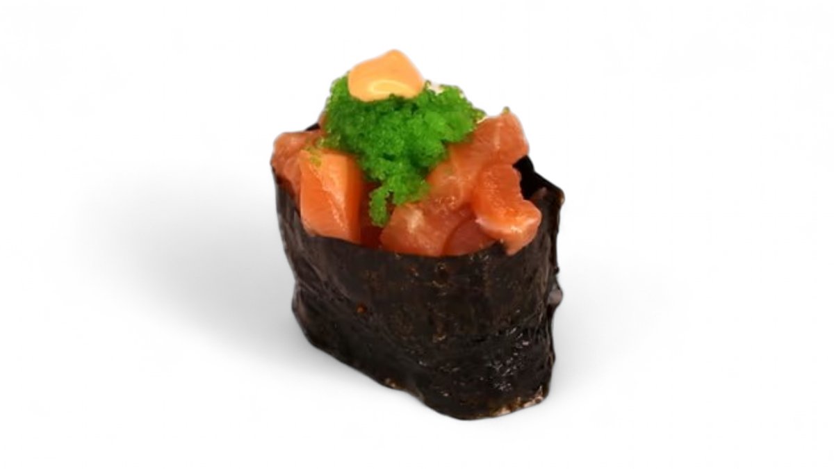 Nr. 66 Su rūkyta lašiša, karai padažu ir žaliais ikrais 🌶️