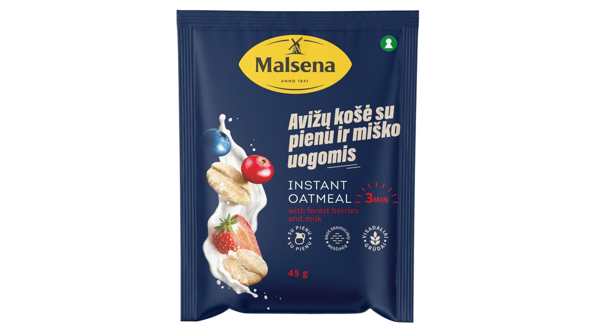 Avižinė košė su pienu ir miško uogomis MALSENA, 45 g