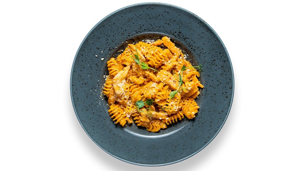 „Radiatori pasta“ su bazilikų pestu ir vištiena