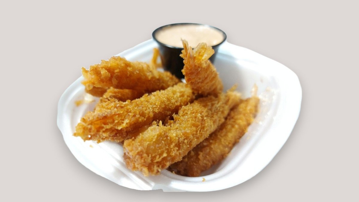 Traški vištiena su kaulu (10 vnt.), svogūnų žiedai (10 vnt.), kalmarų žiedai (10 vnt.), sūris su jalapenu (10 vnt.), čederio sūris (10 vnt.), padažas (3 vnt.)
