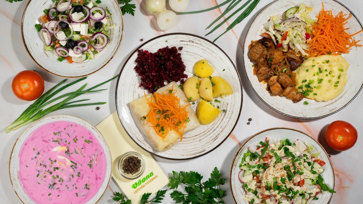 Traditional dishes, lithuanian dishes, salad, beef, soup