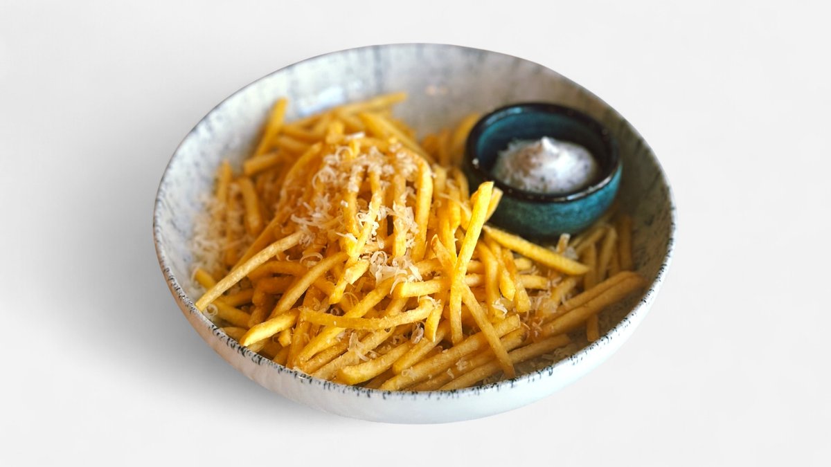 Kiaulienos nugarinė, gruzdintos bulvytės, žalios salotos, naminis pomidorų padažas