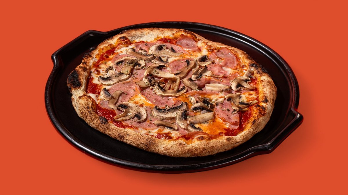 Trintų pomidorų padažas, mozzarella, virtas kumpis, pievagrybiai