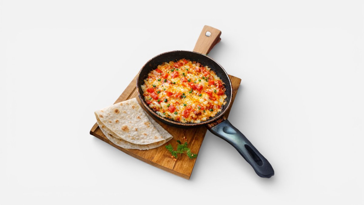 kepti vištienos gabaliukai, kiaušinis, sūris ir smulkinti pipirai