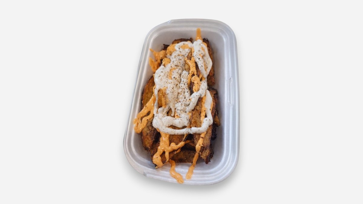 Vištienos sparneliai + vištienos kebabas + bulvytės fri + padažas