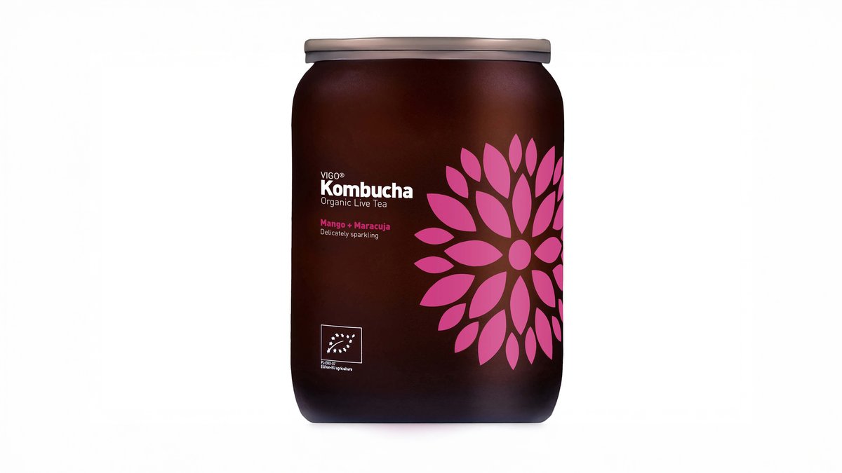 Vigo Kombucha Organic Live Tea,lengvai gazuotas, mango ir pasifloru.