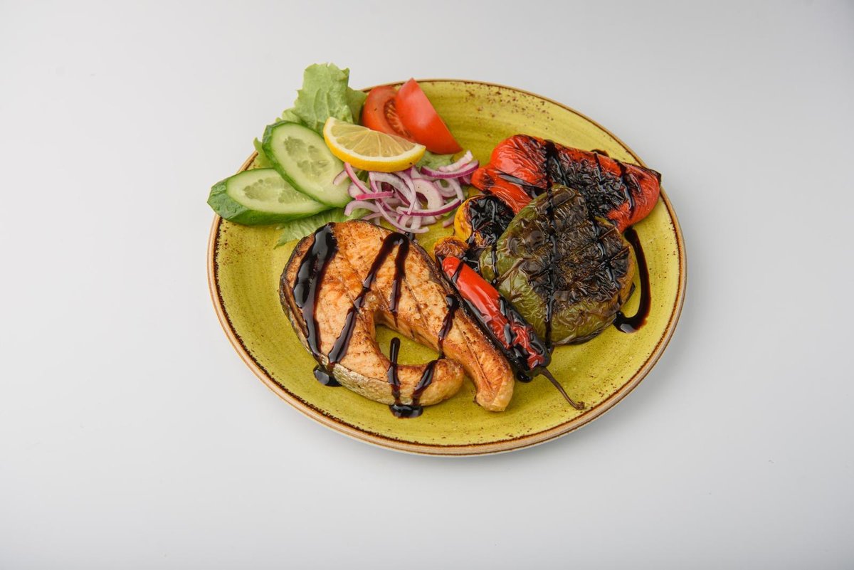 Švelni lašiša su aromatingu padažu, keptos paprikos ir traškios šviežios daržovės – skonių šventė kiekvienam kąsniui. 4o mini
