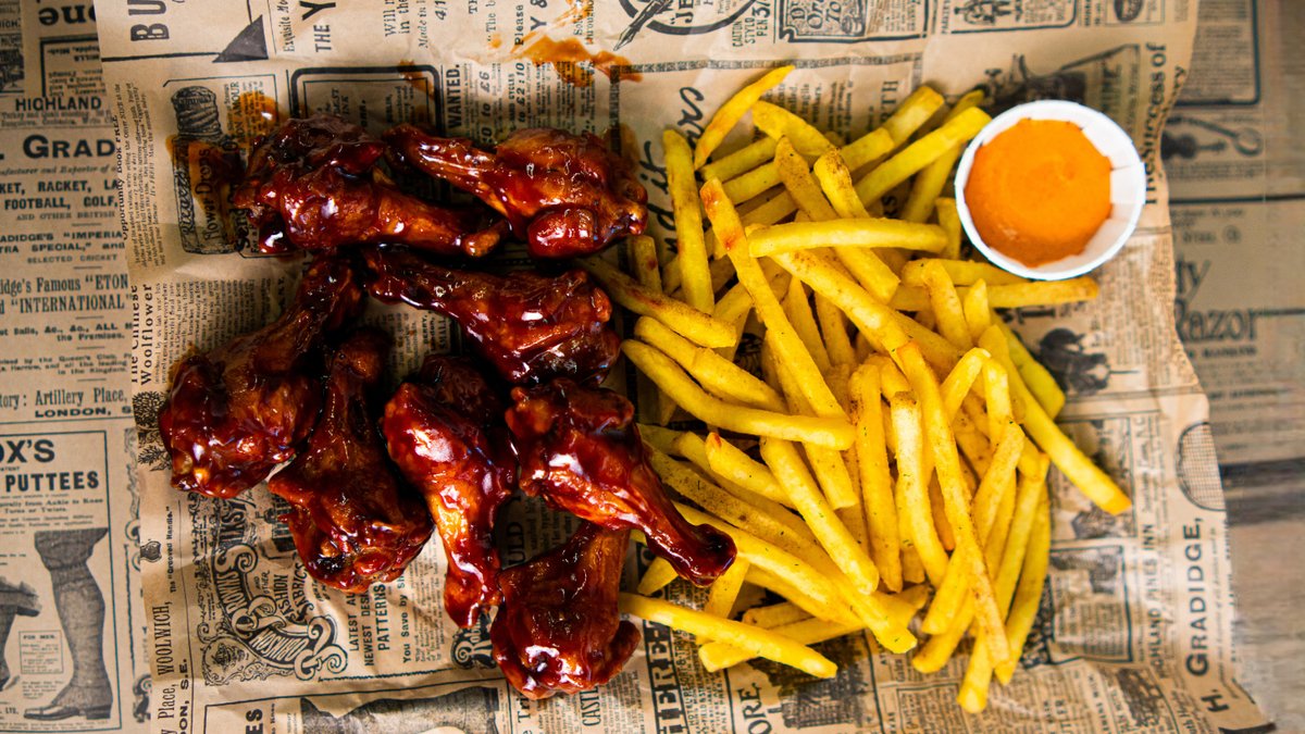 Bandelė, 2x svogūnų žiedai, čederio sūris, marinuoti agurkėliai, agurkėlių majonezas.