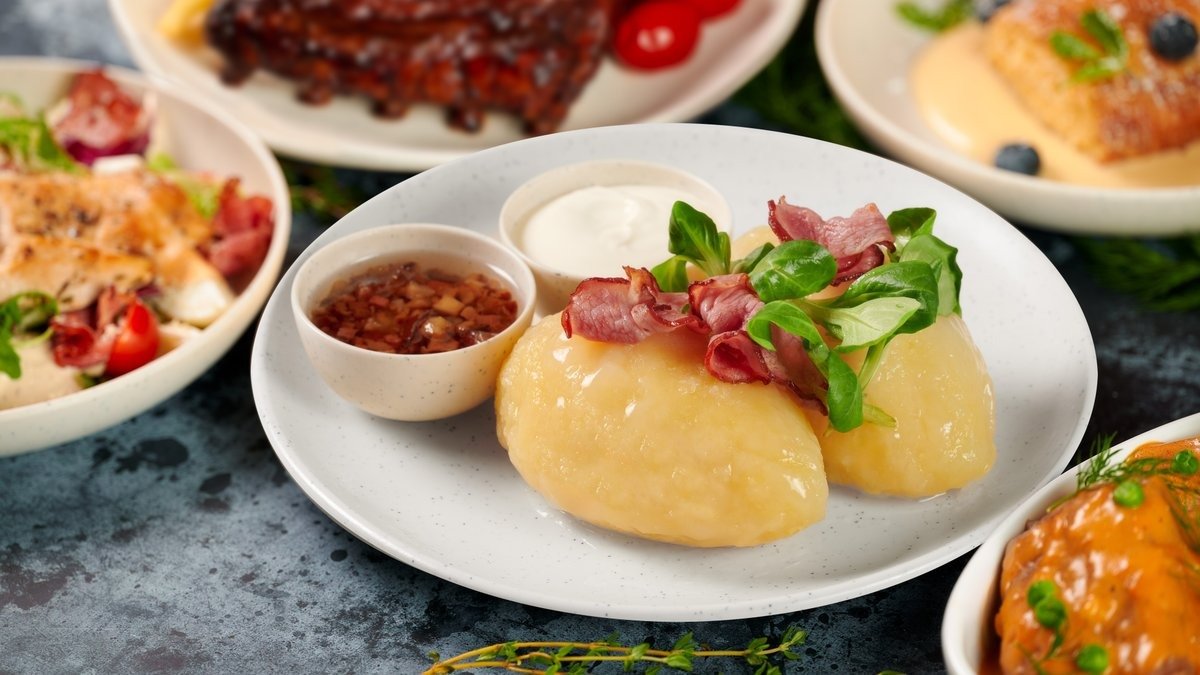 The menu features traditional dishes such as cepelinai, kugelis, vėdarai, and cold beet soup (šaltibarščiai), prepared with a modern touch and love