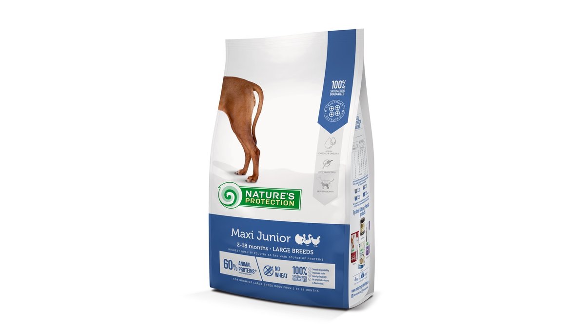 Nature's Protection Maxi Junior Poultry 2-18 months Large breed dog 4 kg, didelių veislių jaunų šunų sausas pašaras su paukštiena