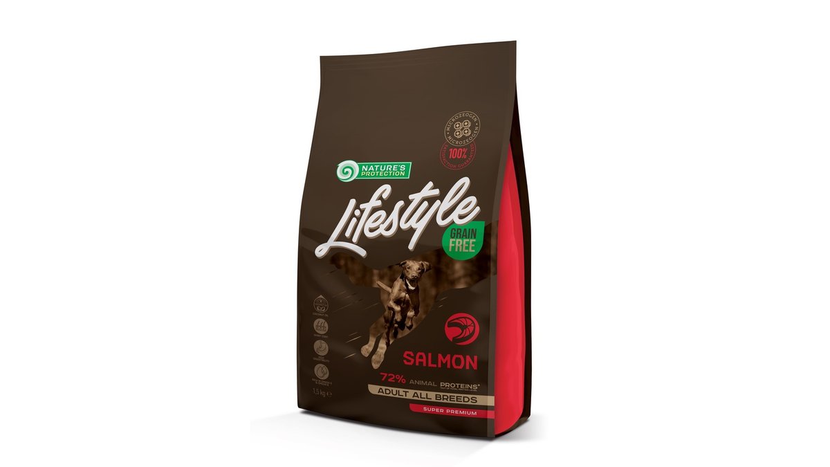 Nature's Protection Lifestyle Grain Free Salmon Adult All Breeds 1,5 kg, visų veislių suaugusių šunų sausas pašaras su lašiša