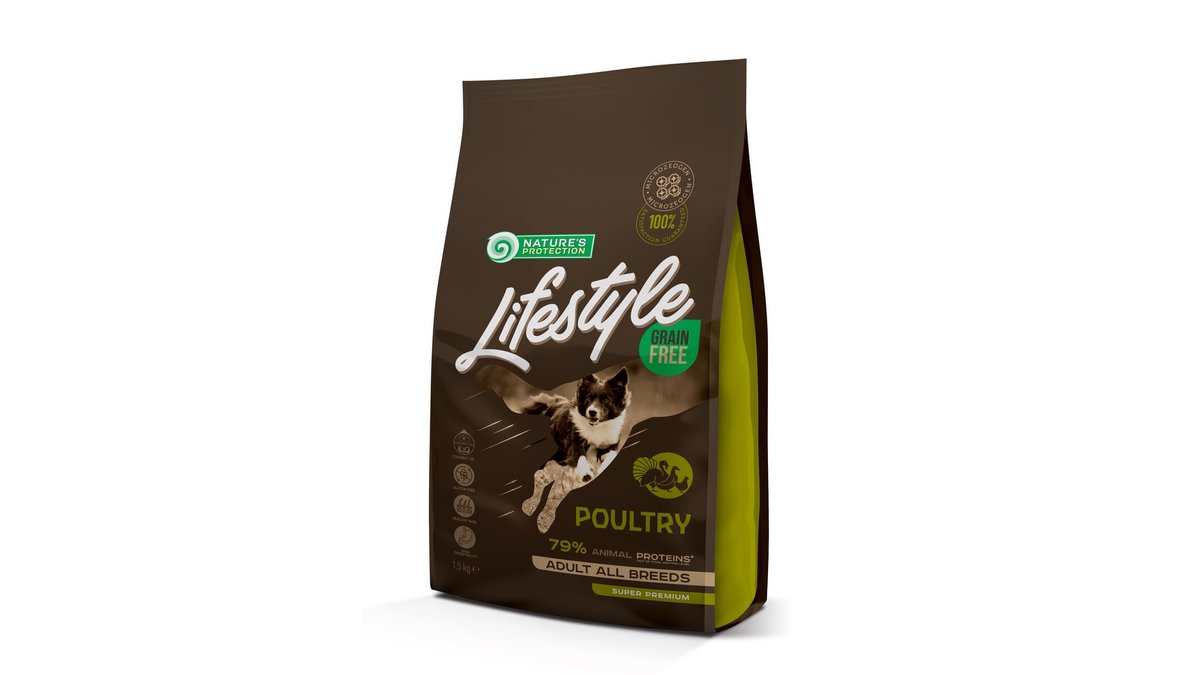Nature's Protection Lifestyle Grain Free Poultry Adult All Breeds 1,5 kg, suaugusių visų veislių šunų sausas begrūdis pašaras su paukštiena