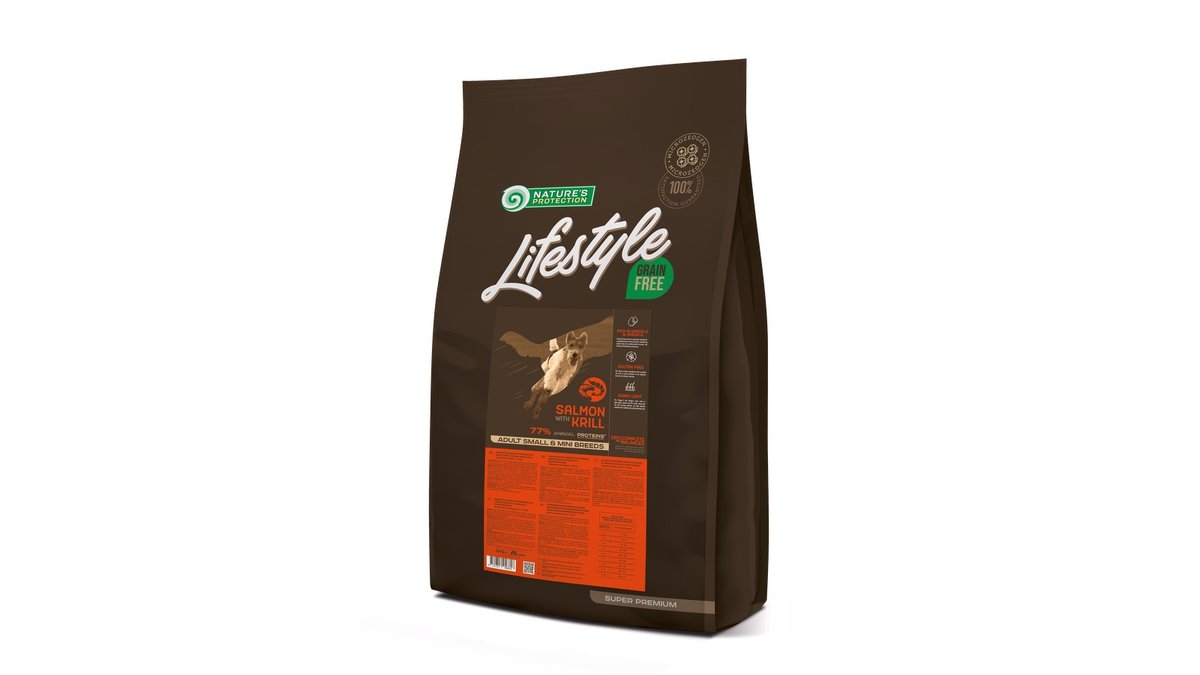 Nature's Protection Lifestyle Grain Free Salmon with krill Adult Small and Mini Breeds 10 kg, suaugusių mažų ir labai mažų veislių šunų sausas begrūdis pašaras su lašiša ir kriliu