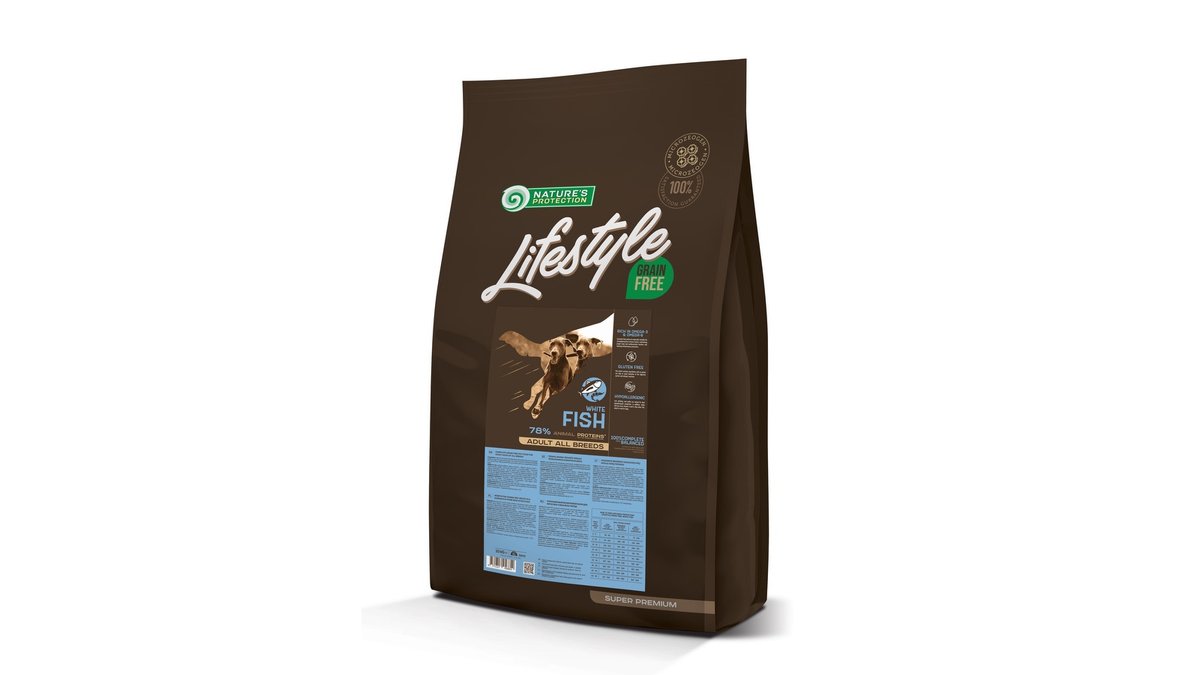 Nature's Protection Lifestyle Grain Free White Fish Adult All Breeds 1,5 kg, suaugusių visų veislių šunų sausas begrūdis pašaras su balta žuvimi