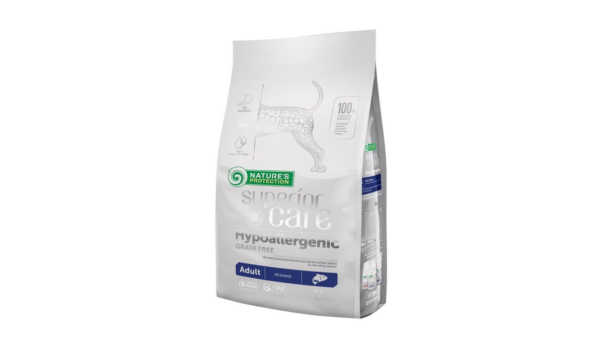 Nature's Protection Superior Care Hypoallergenic Grain Free Salmon Adult All Breeds 1,5 kg, suaugusių visų veislių jautrią virškinimo sistemą turinčių šunų sausas begrūdis pašaras su lašiša