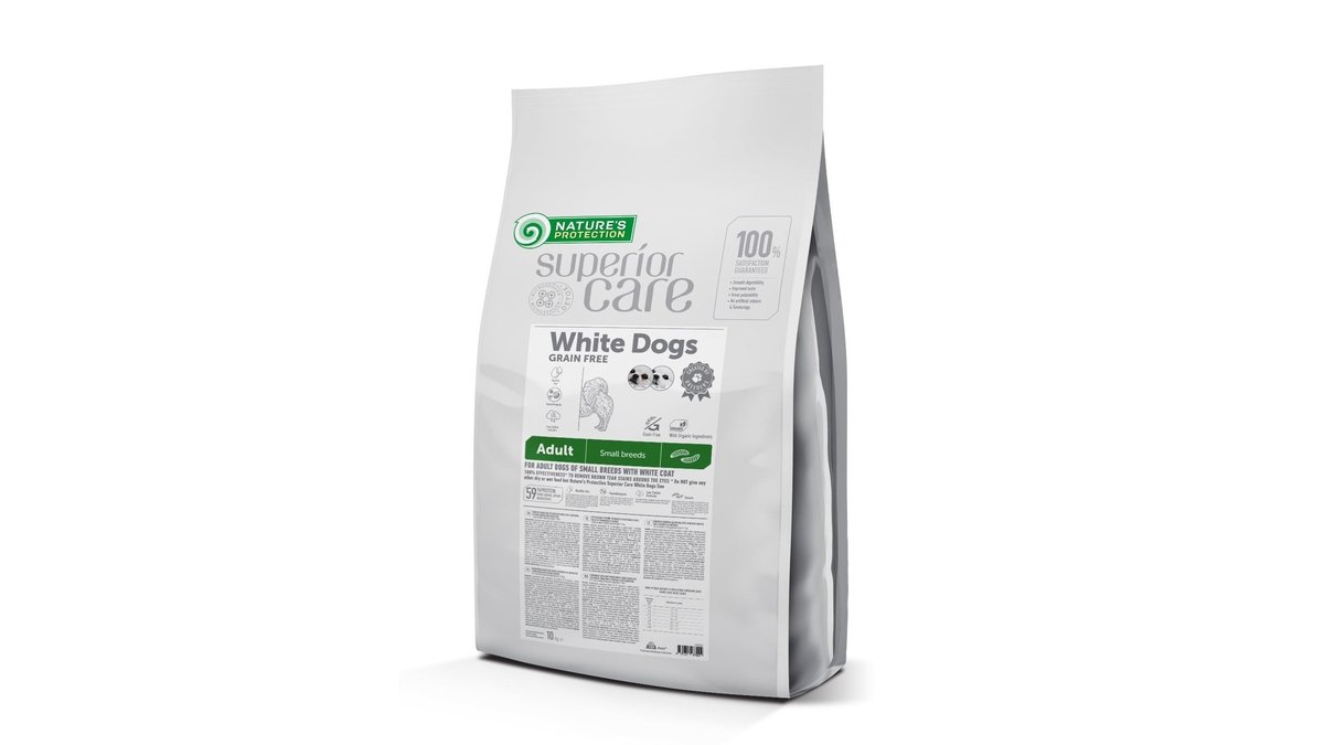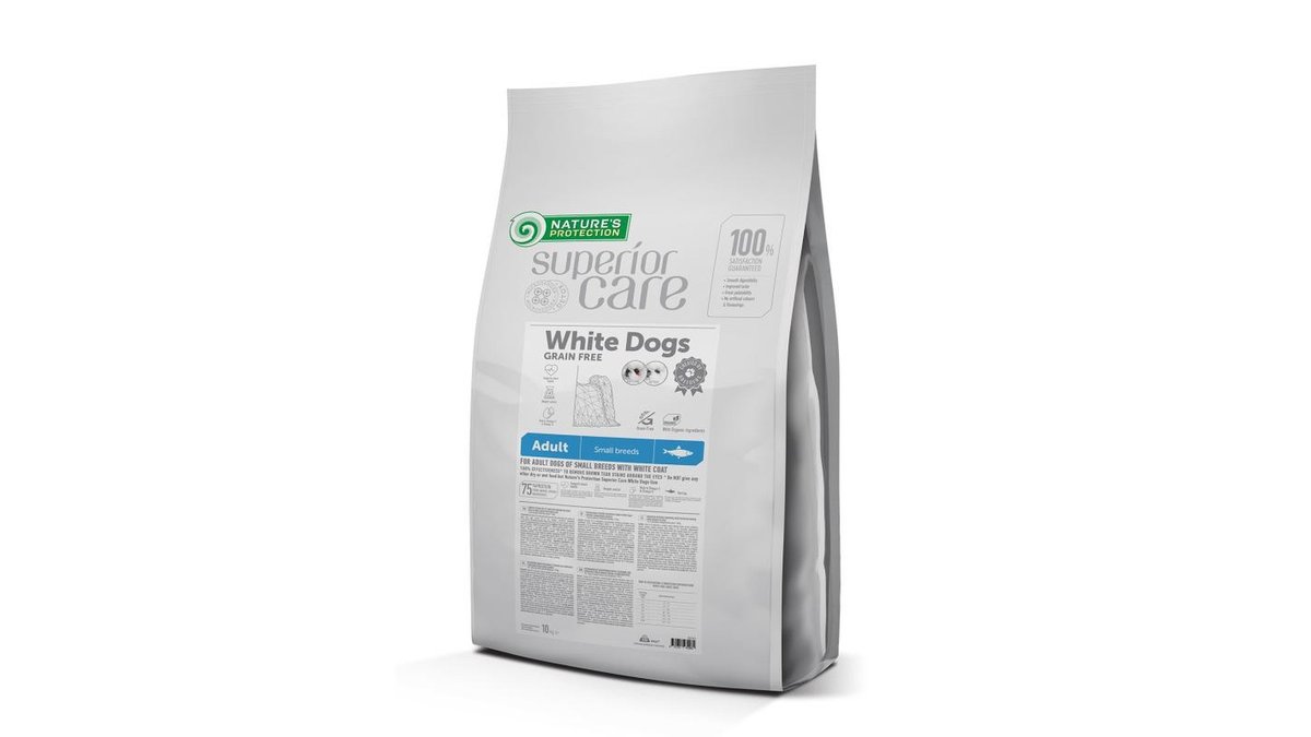 Nature's Protection Superior Care White Dog Grain Free with Herring Adult Small Breed 10 kg, suaugusių, mažų veislių baltakailių šunų sausas begrūdis pašaras su silke