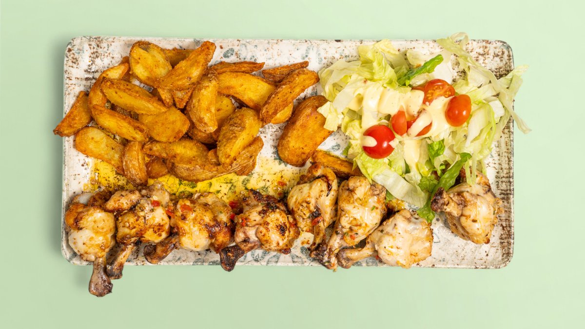8 chicken drumettes glazed with Garlic, Butter & Parmesan, served with salad and your choice of side.