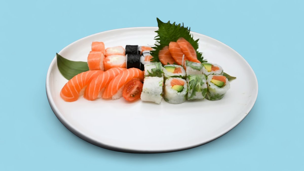 50pcs California surimi x8 Maki saumon roll x8 Tempura poulet x6 Maki thon x8 Sashimi thon x4 Sushi saumon x4 Sushi thon x3 Sushi scampisx3 Sashimi saumon x4 Sashimi dorade x2