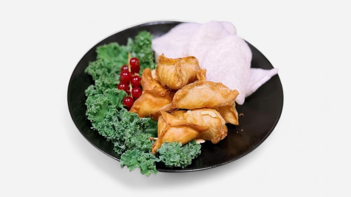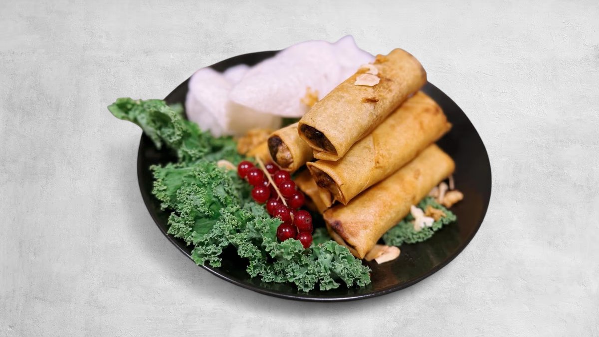 8 gab. krēmsiers, rīsu papīrs, mango mērce, garneļu čipsi