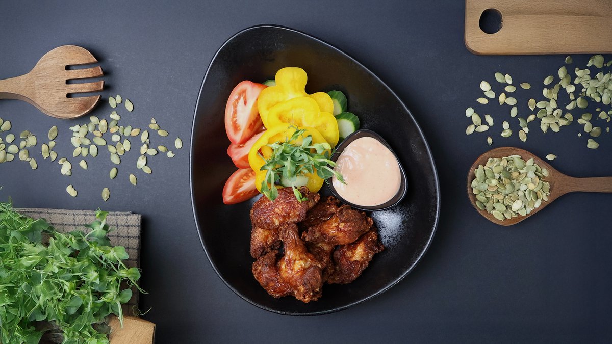 Panēti vistas spārniņi ar mērcīti