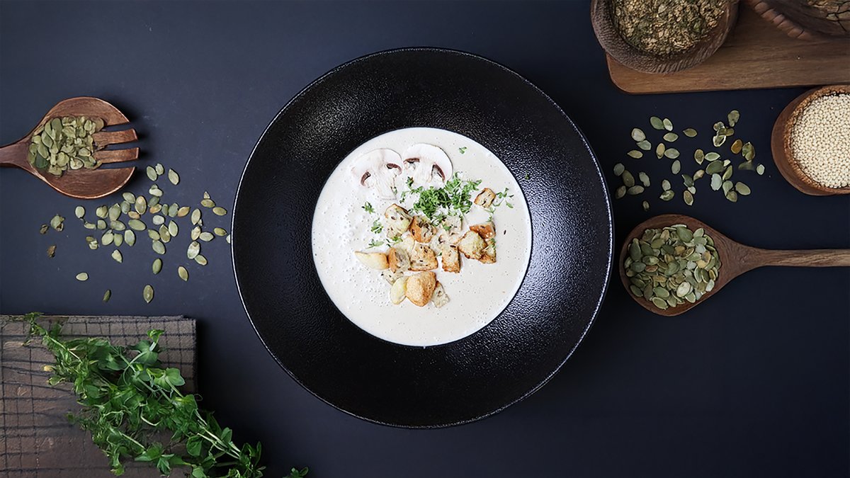 (saldais krējums, skābais krējums, šampinjoni, garšvielas)