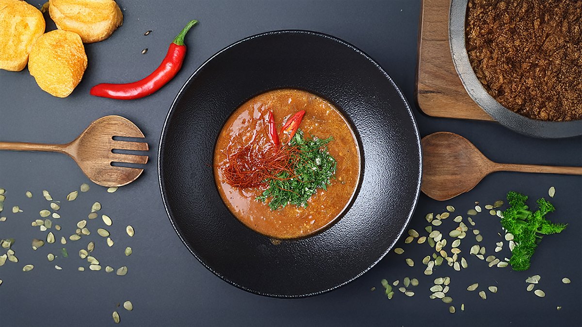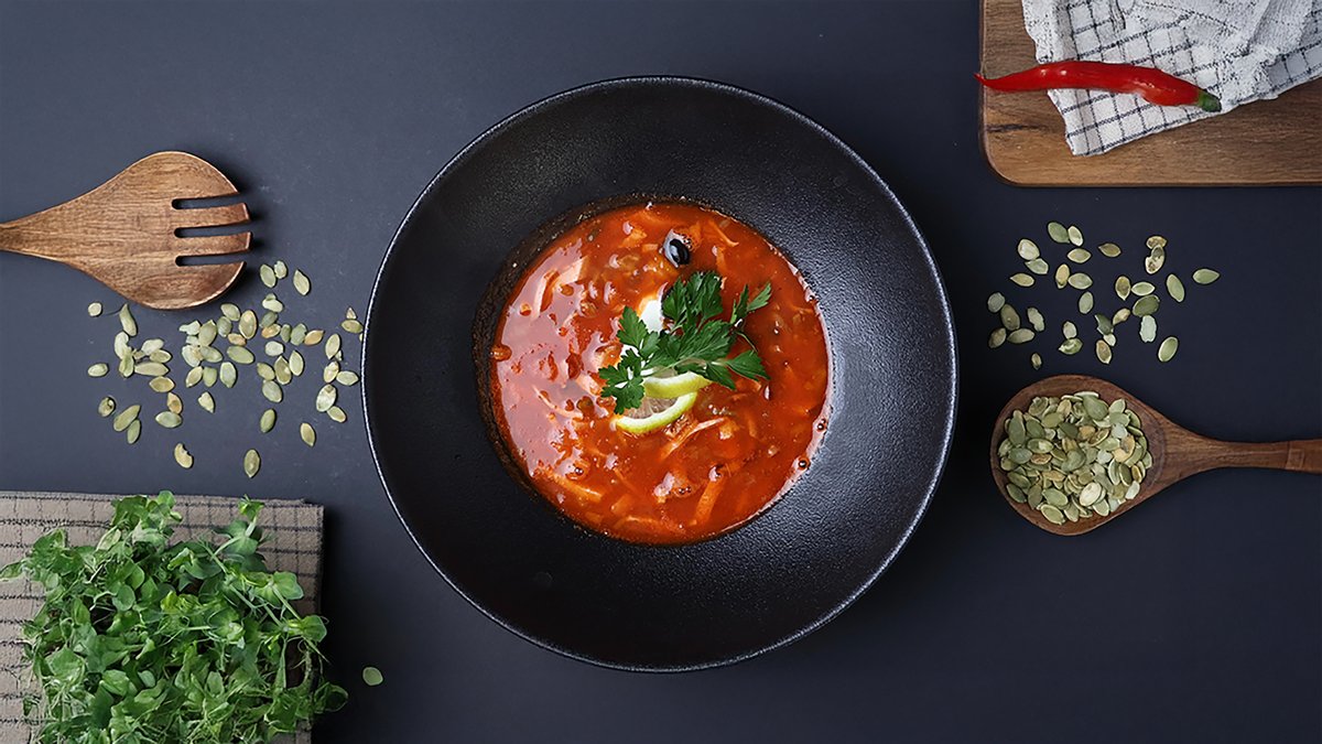 (liellopa buljons, doktordesa, salami desa, vārīta liellopa gaļa, burkāni, sīpoli, marinēti gurķi, tomātu pasta, garšvielas)