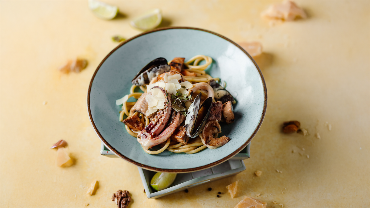 Mīdijas baltvīna - marinara mērcē ar zaļumu sviestā grilētu maizi