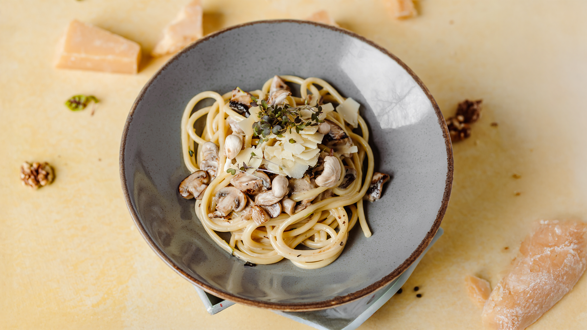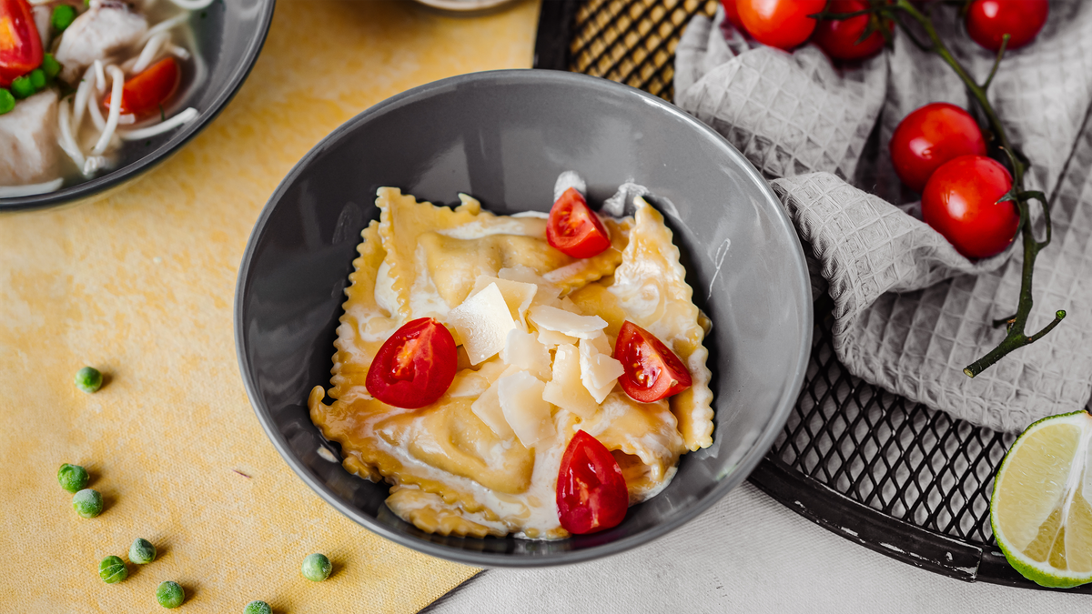 Tomātu - kokospiena krēmzupa ar parmezāna sieru un baziliku