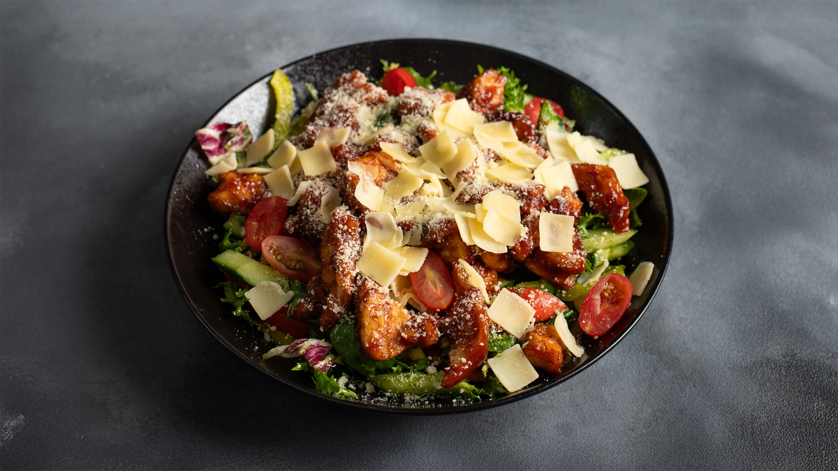 Salāti ar BBQ vistu, bazilika pesto un parmezāna sieru 1kg.