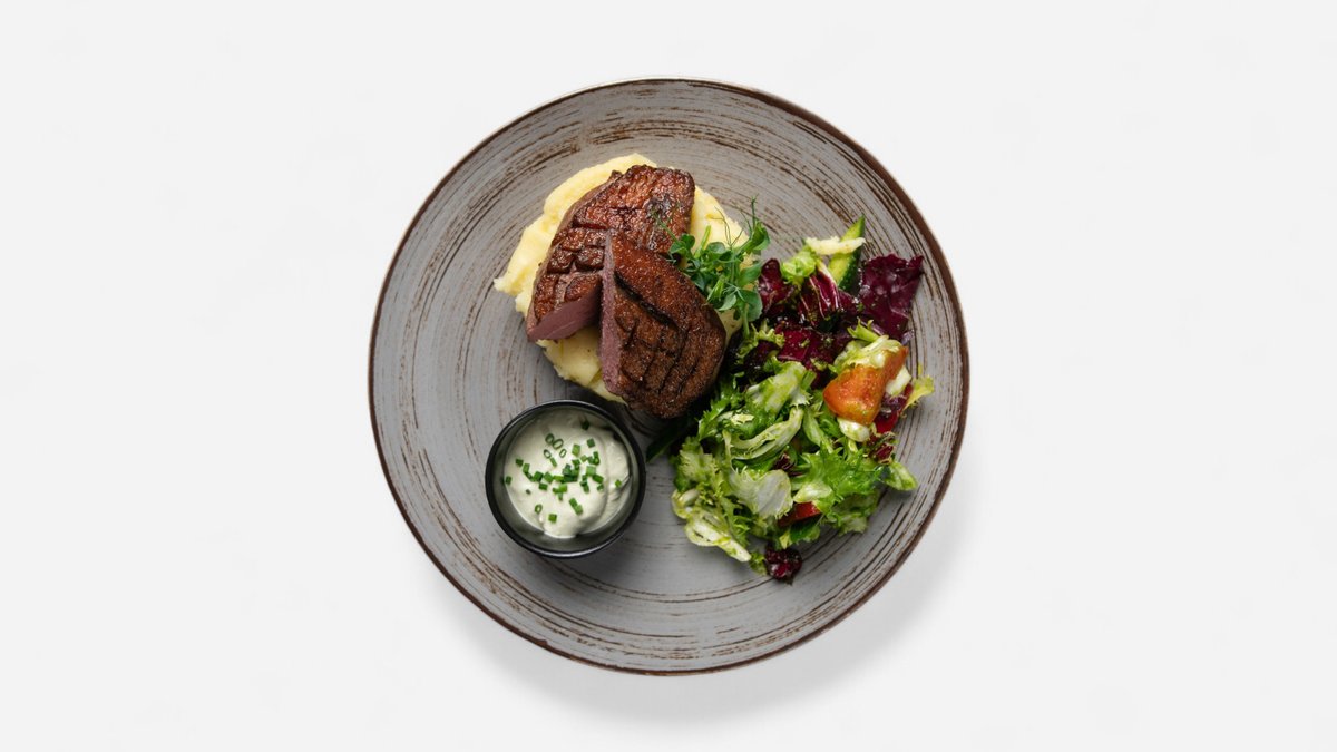 Burgeru mērce, ledus salāti, tomāts, svaigs gurķis, sīpols, grilēta biete, sīpolu marmelāde