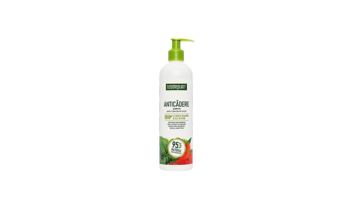 Cosmeplant šampūns pret matu izkrišānas ar nātres, rīcineІІas ekstraktu visiem matu tipiem, 400 ml