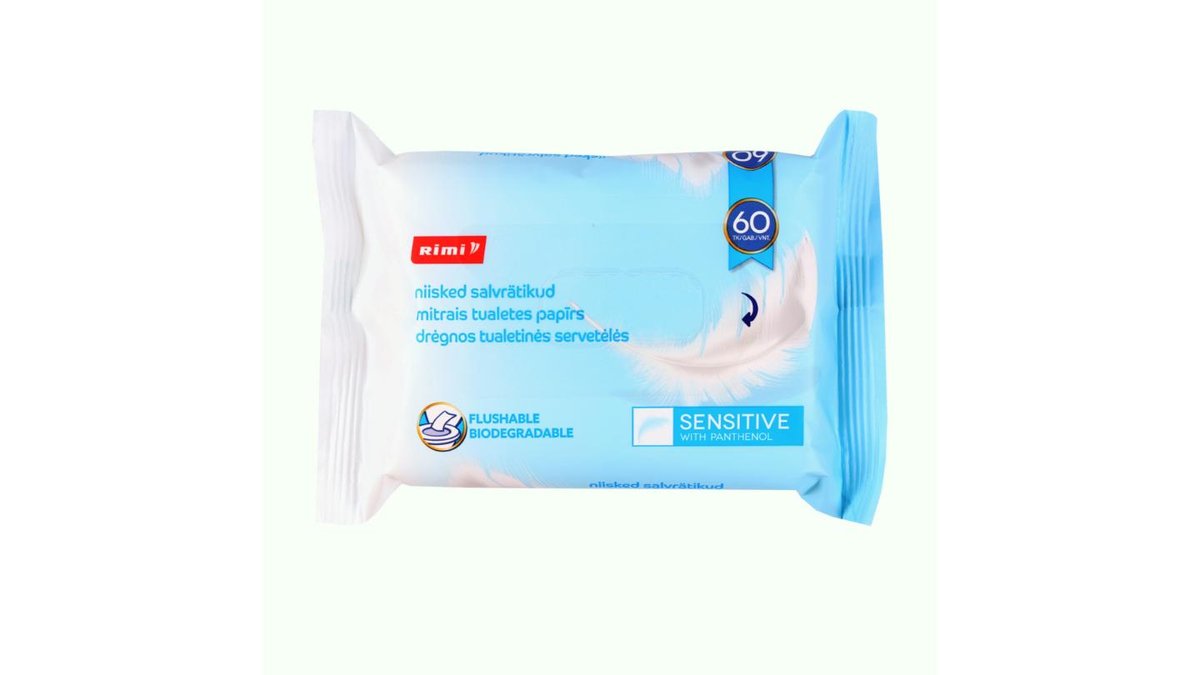Mitrais tualetes papīrs Rimi Sensitive 60 gab.