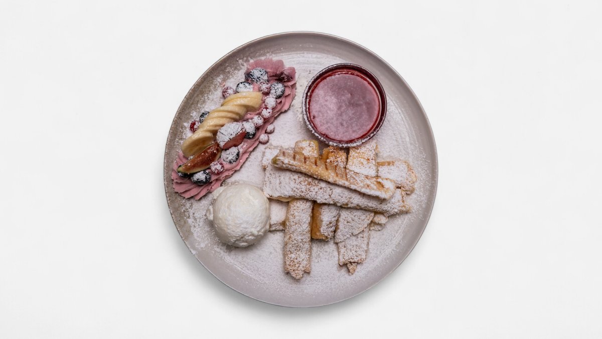 Plānās pankūkas ar paštaisītu aveņu krēmu un ievārījumu, kā piedeva tiek pasniegta arī saldējuma bumbiņa. Dekorē ar svaigām ogām. ALERGĒNI: 1.GRAUDAUGI UN TO PRODUKTI 3.OLAS UN TO PRODUKTI 7.PIENS UN TĀ PRODUKTI