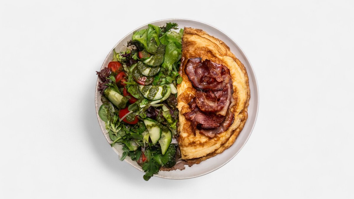 Sulīga omlete ar kraukšķīgu bekonu, iesakām arī pievienot piedevas, kā piemēram, gvakamoli, biezpienu ar zaļumiem un dubulto bekonu. ALERGĒNI: 8.RIEKSTI UN TO PRODUKTI 7.PIENS UN TĀ PRODUKTI 3.OLAS UN TO PRODUKTI