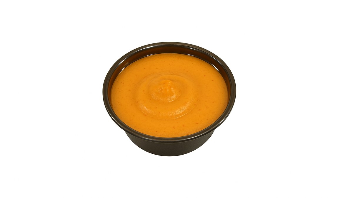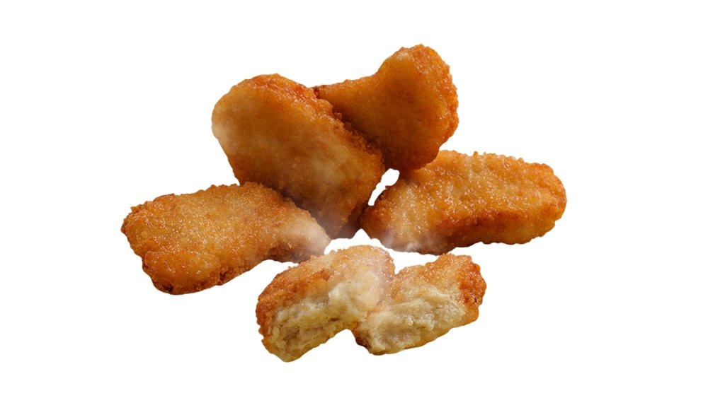 Frī kartupeļi, vistas gaļa, baltā mērce, tomātu mērce