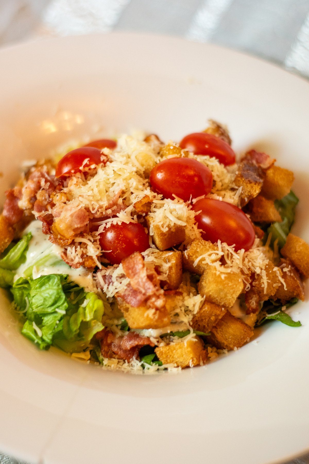 Cūkgaļas karbonāde ar papriku, šampinjoniem, kūpinājumiem un sieru.