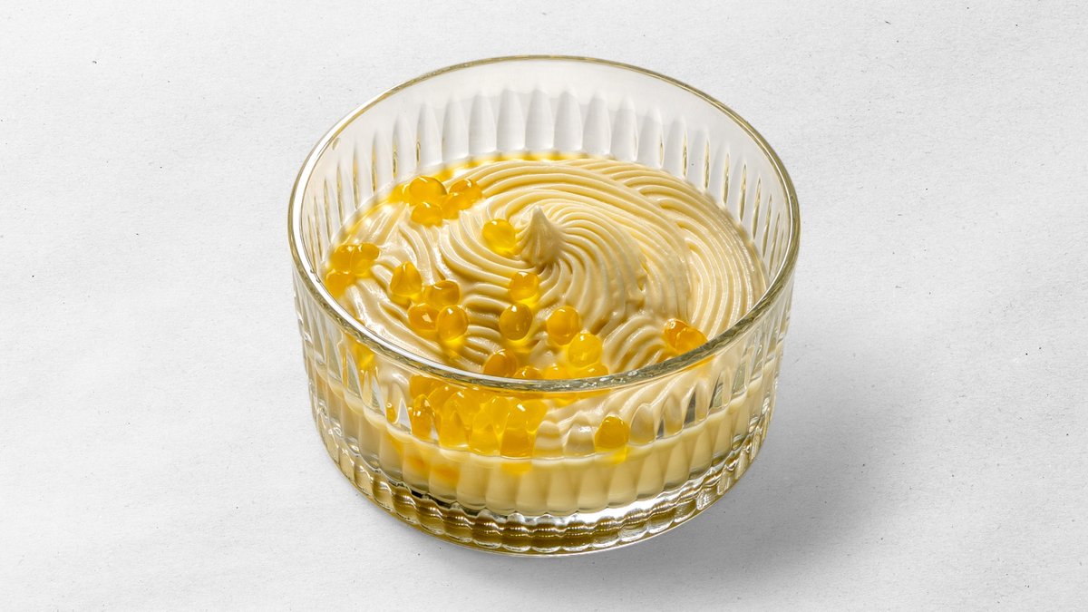 Cūkgaļas karbonāde un biezpiena krēms ar zemeņu mērci. Piedevas pēc izvēles. Pasniedz ar svaigiem dārzeņu salātiem. Attēlam ir ilustratīva nozīme.