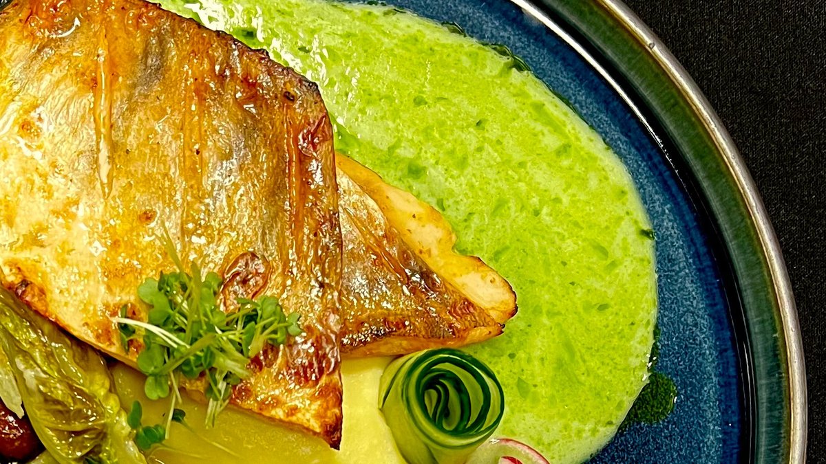 Zandarta fileja ar kartupeļu biezeni un holandes mērci
