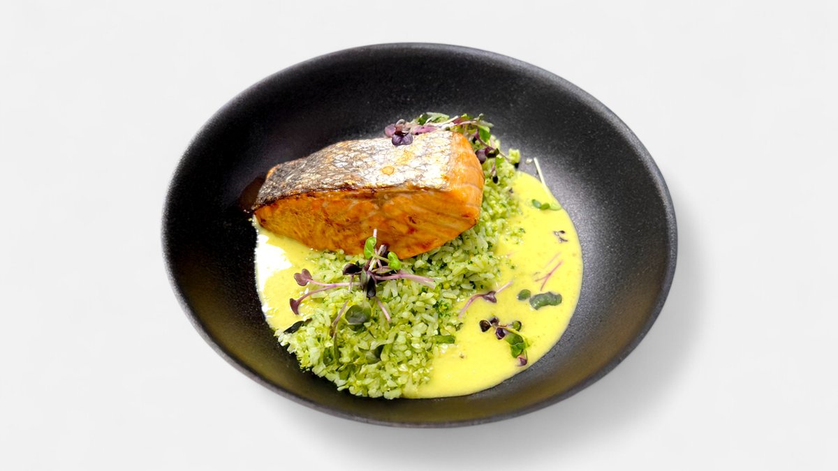 Cepta laša fileja ar zaļumu rīsiem un kokospiena-laima mērci