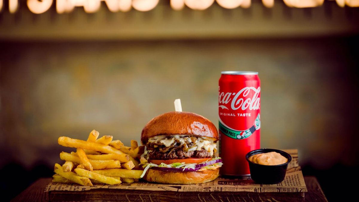 SMASH burgera komplekts ar frī kartupeļiem, mērci un dzērienu pēc izvēles