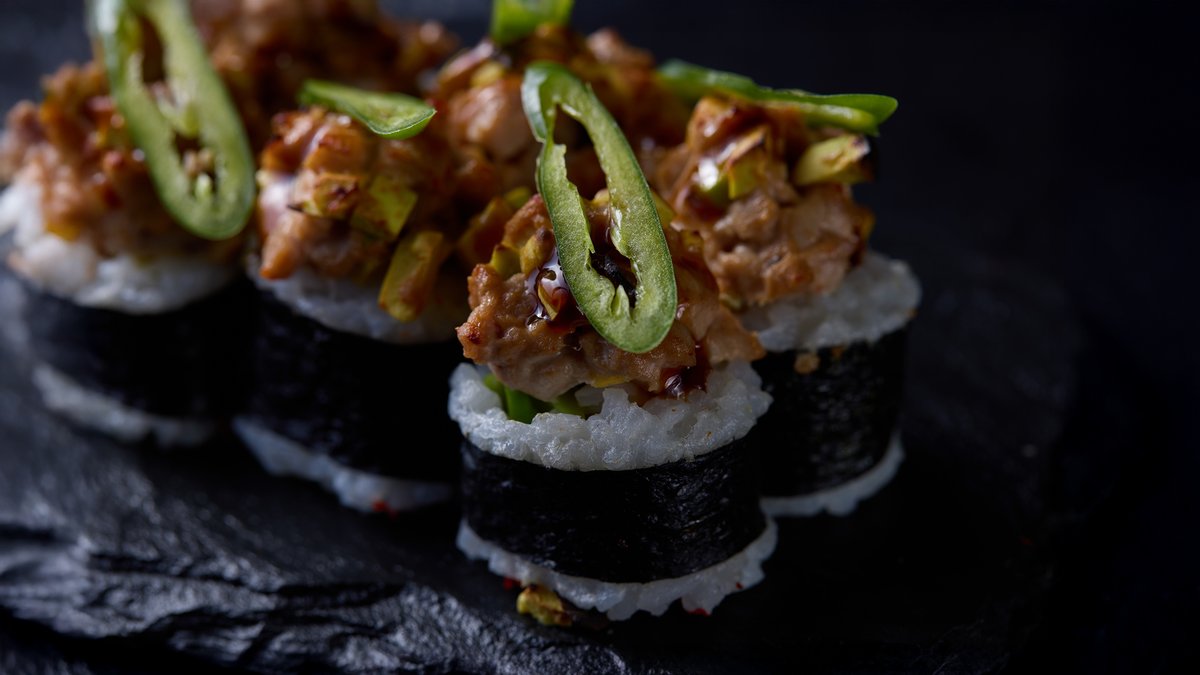 A vibrant celebration of plant-based sushi. Our signature Zen Garden roll leads a refreshing trio, complete with elegant asparagus and bright avocado hosomaki.