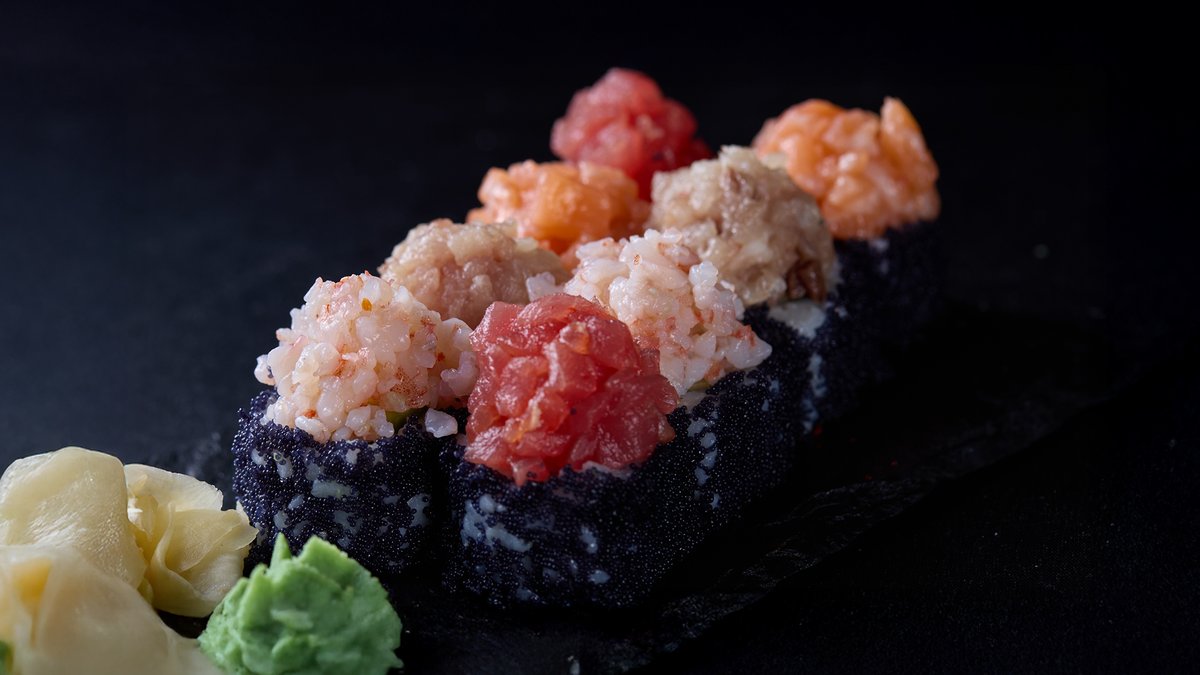 California base topped with 4 types of fish (Tuna, Salmon, Hamachi, Ebi) & 4 types of Roe (Ikura, Tobiko, Masago)