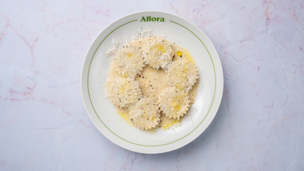 Ravioli, rikotas siers ar spinātiem, karamelizēts itāļu sviests