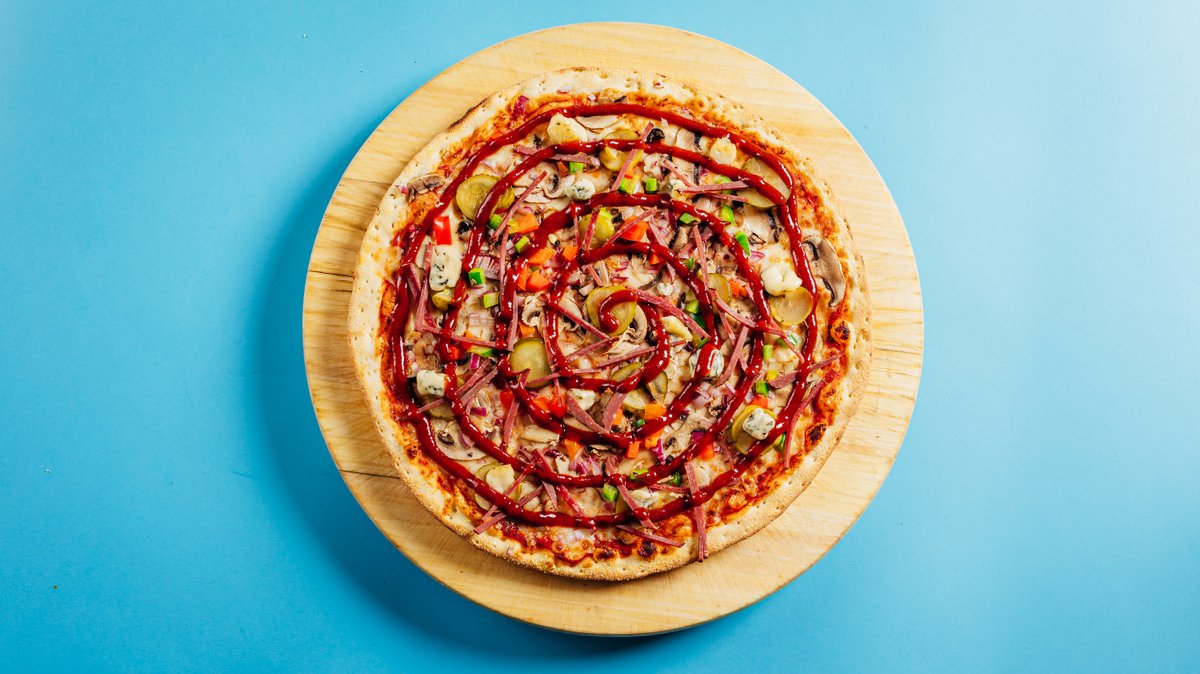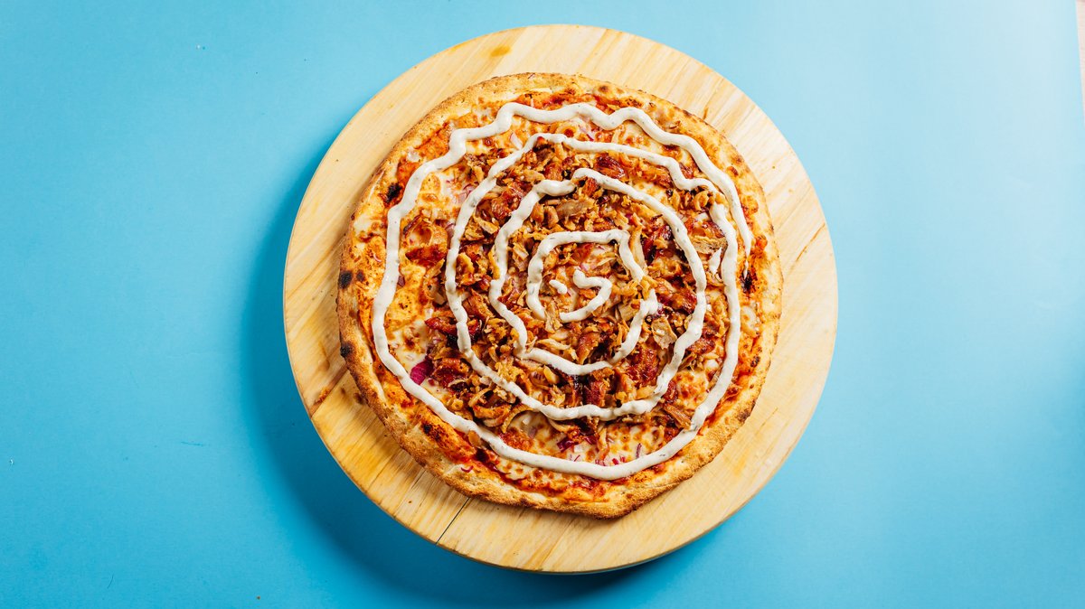 Tomātu mērce, šķidrais siers, vista, bekons, paprika, sīpoli, ķiploku mērce, oregano